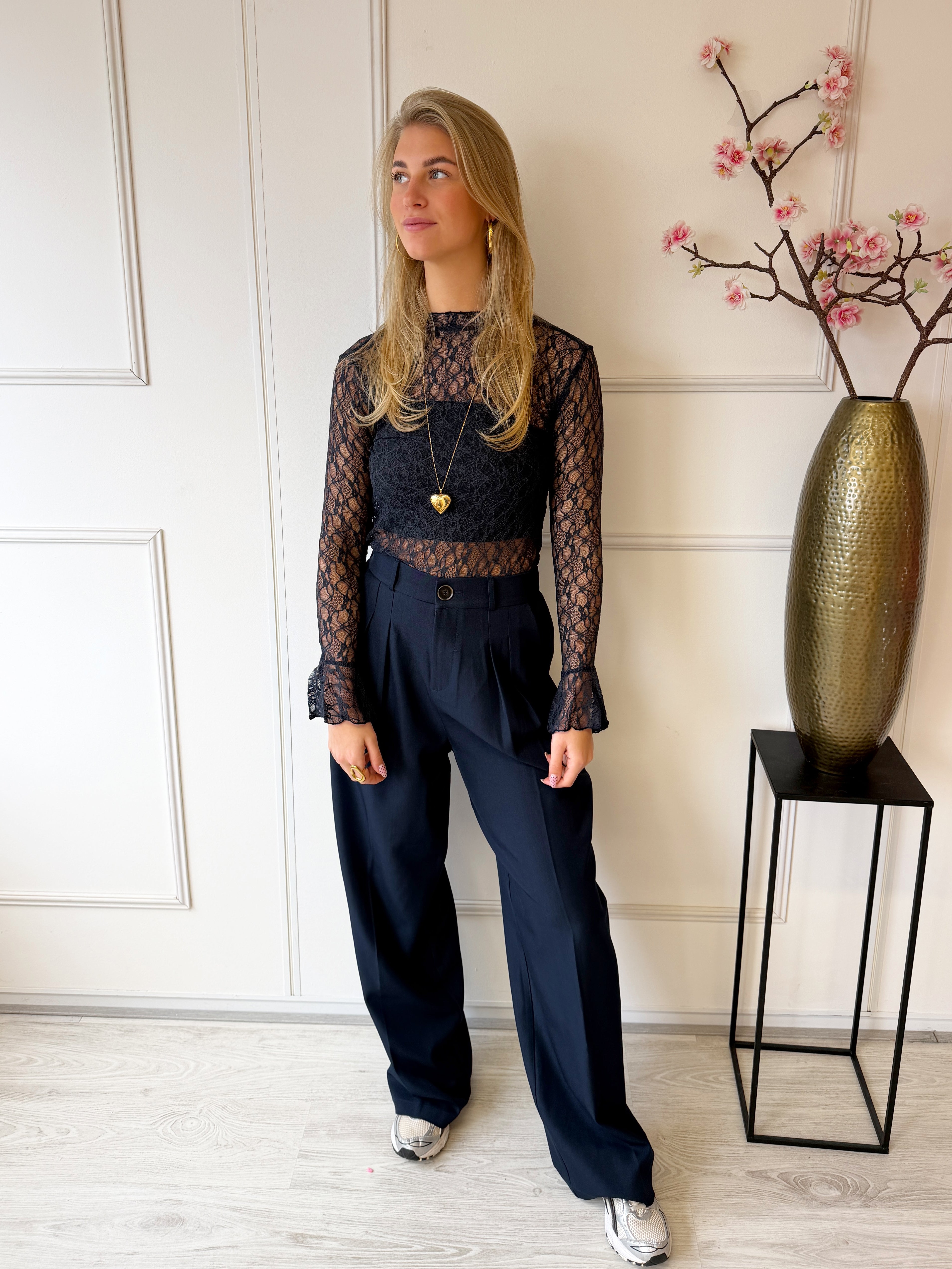 Kanten Top Flared Mouw | Navy
